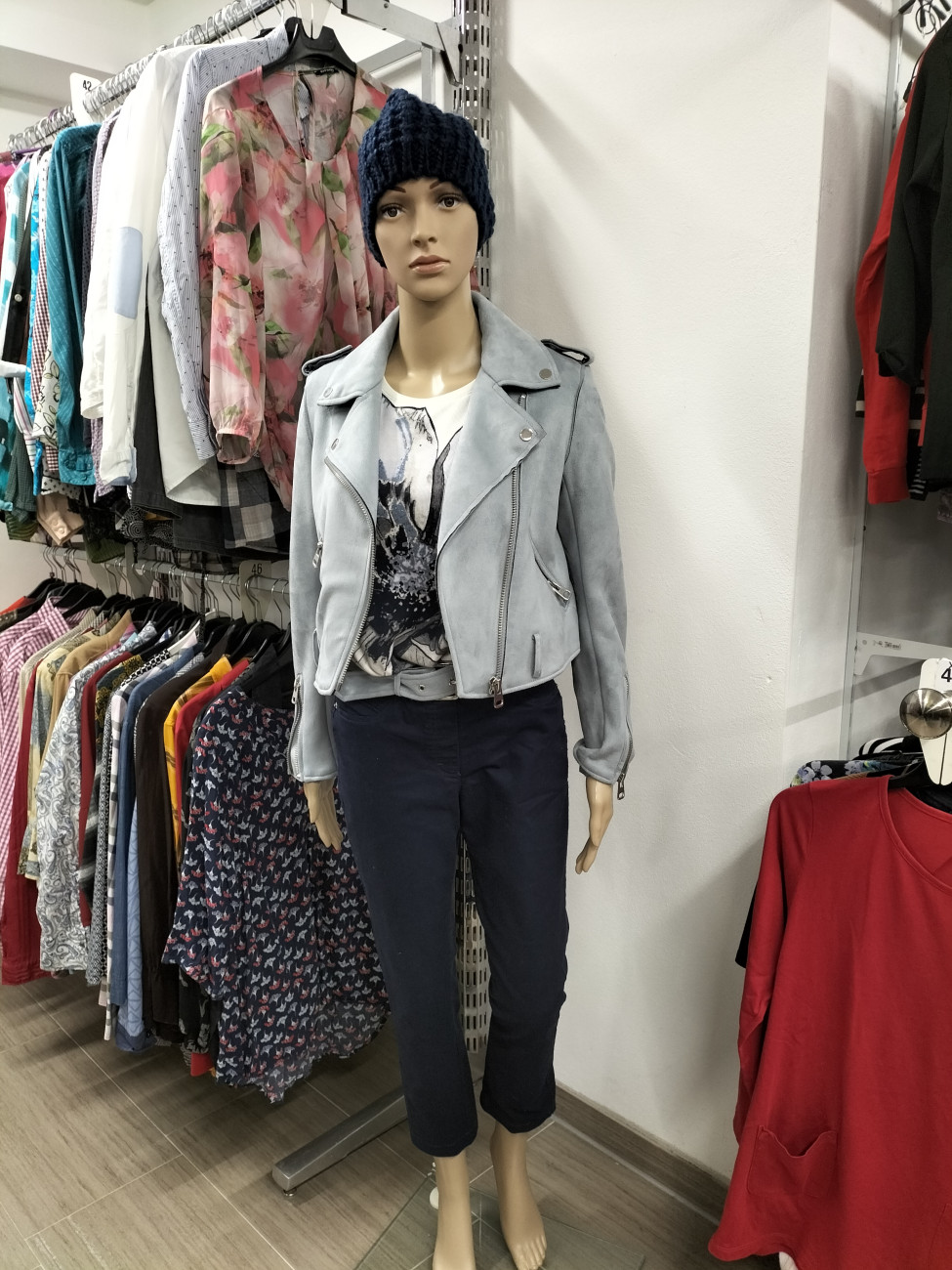 super schönes Outfit für unter 20 €: eine weiß-blaue Frühjahrsjacke